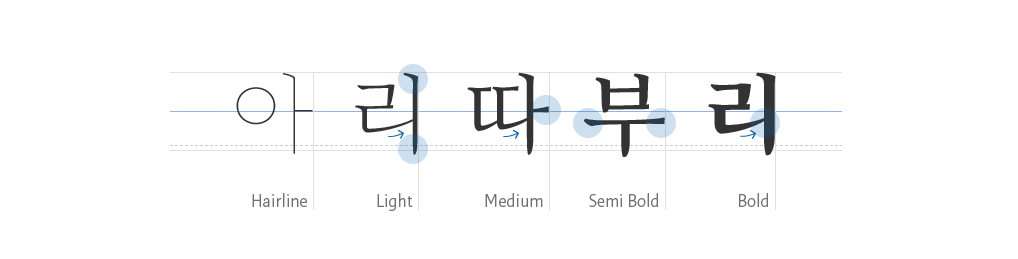 아리따 부리 패밀리는 헤어라인부터 미디움까지 본문에 썻을때, 차분한 느낌이 마음에 듭니다. 세미 볼드와 볼드는 강조하는 부분에 쓰시면 되겠네요.